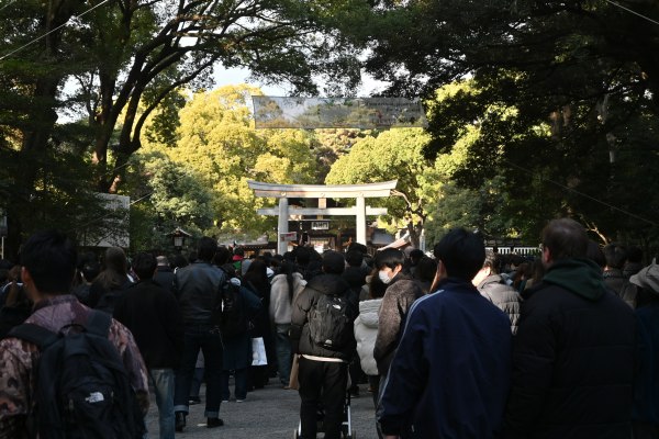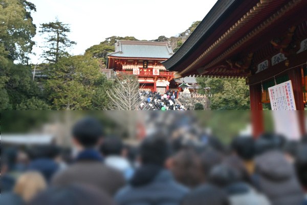 次に鶴岡八幡宮に行き初詣なので並ぶ事にする。3時50分から並んで本殿でお参りできたのは5時前。