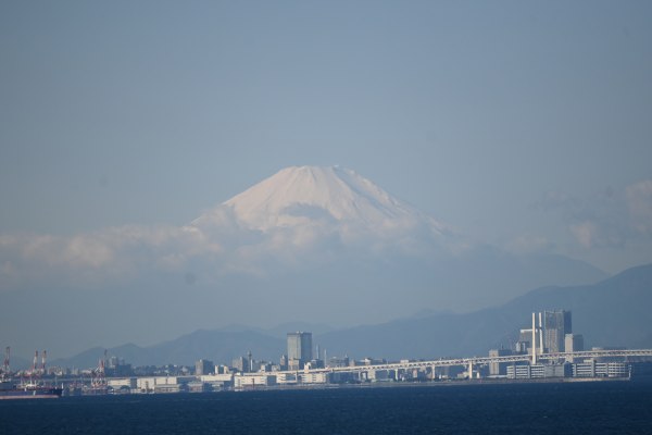 5階建ての展望デッキから見る東京湾は絶景というほど周辺が見渡せる。東向きには富士山もくっきり見えて正月らしい。デッキを回り木更津方面を見ると渋滞が発生していた。午前は東京から木更津へ行く車が多いので、行程を木更津回りにしておいた。