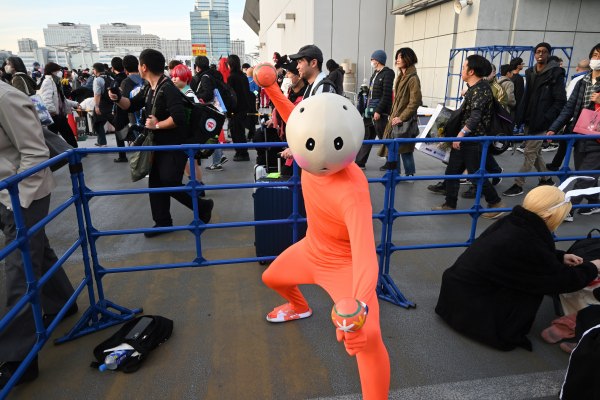 次に企業ブースメインの南館へ。出版社やゲーム会社、アニメグッズ販売社が出展しており、コスプレ撮影もしていた。最後は有志のコスプレコーナーへ。アニメキャラに扮したコスプレーヤーを撮影できるので、コミケの人気の場所。女性キャラでも扮しているのが男性だったりするので面白い。